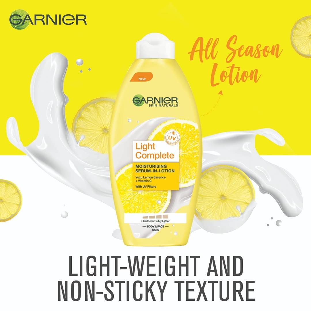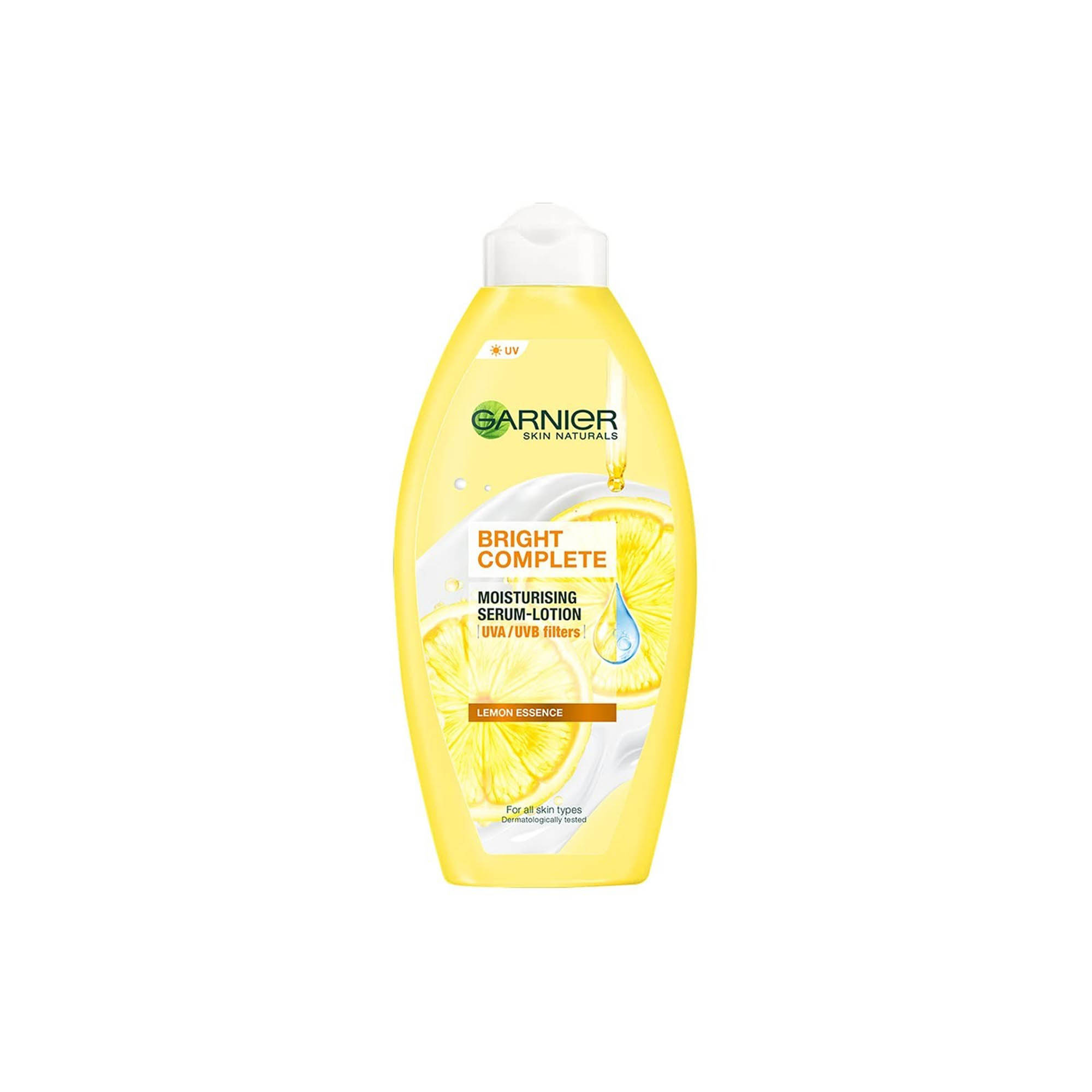 Intensely moisturise and brighten your skin with the Garnier Bright Complete Body Lotion. This lightweight lotion not only reduces dark spots but also protects your skin from the harsh UV rays of the sun. The unique serum-in-lotion formula is the perfect all-season solution for healthy and hydrated skin, which does not leave behind any stickiness.